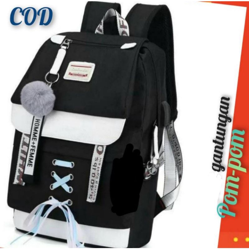 Paket Tas Sekolah Anak Perempuan Ransel Wanita Bonus Gantungan BT21 dan Mybottle